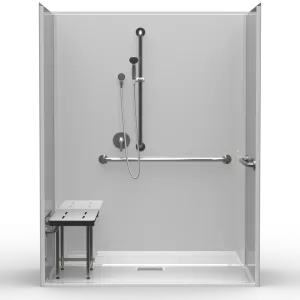 Our ADA-compliant multi-piece roll-in showers feature minimum inside dimensions of 60" x 30" or 60" x 36" for full wheelchair accessibility. Designed for easy installation and long-lasting durability, they deliver reliable performance. Ideal for universities, assisted living communities, hotels, and public facilities.