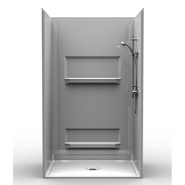 48″X 36″ LG BARRIER FREE MULTI – PIECE SHOWER | ACCESSIBLE | CENTER DRAIN | SUBWAY TILE |