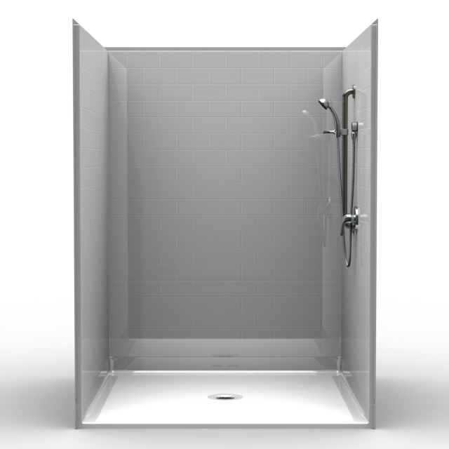 60″X 60″ LG BARRIER FREE MULTI -PIECE SHOWER | ACCESSIBLE | CENTER DRAIN | SUBWAY TILE |