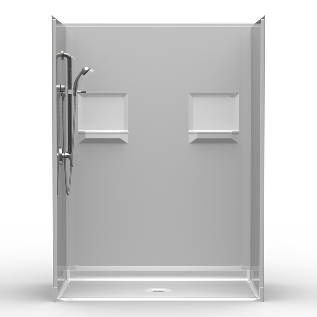 60″X 33″ LG BARRIER FREE MULTI -PIECE SHOWER | ACCESSIBLE | CENTER DRAIN | SMOOTH WALL |