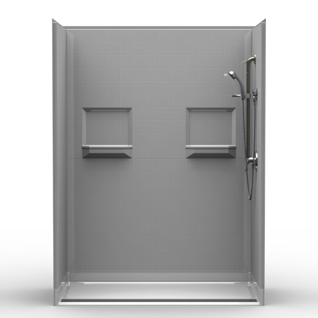 60″X 32″ LG BARRIER FREE MULTI -PIECE SHOWER | ACCESSIBLE | FRONT TRENCH DRAIN | SUBWAY TILE |