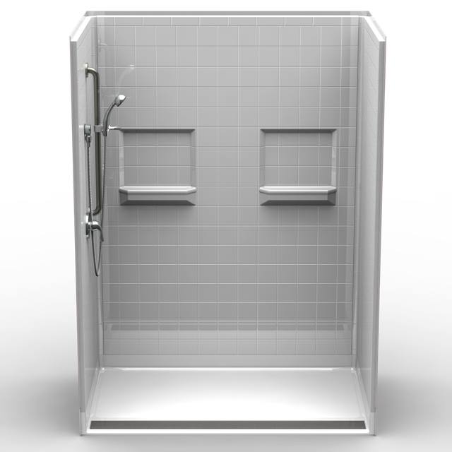 60″X 36″ LG BARRIER FREE MULTI -PIECE SHOWER | ACCESSIBLE | FRONT TRENCH DRAIN | 4″ REAL TILE |