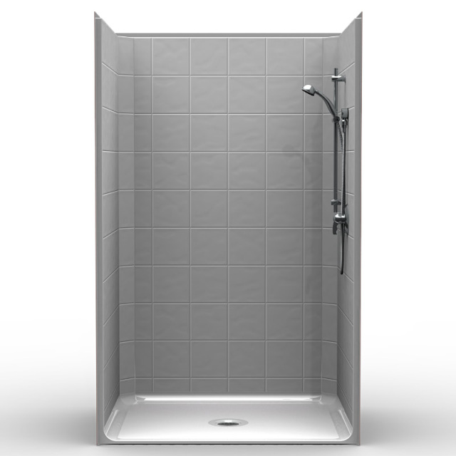 This is a 1-piece Barrier Free shower. The model has a 1/2″ threshold with a Center drain and a beautiful Eight Inch Tile wall pattern finish. Luxurious polyester gelcoat finish. Full plywood backing on all walls for outstanding strength and customized installation of accessories. No mud setting required. All accessories are priced separately.